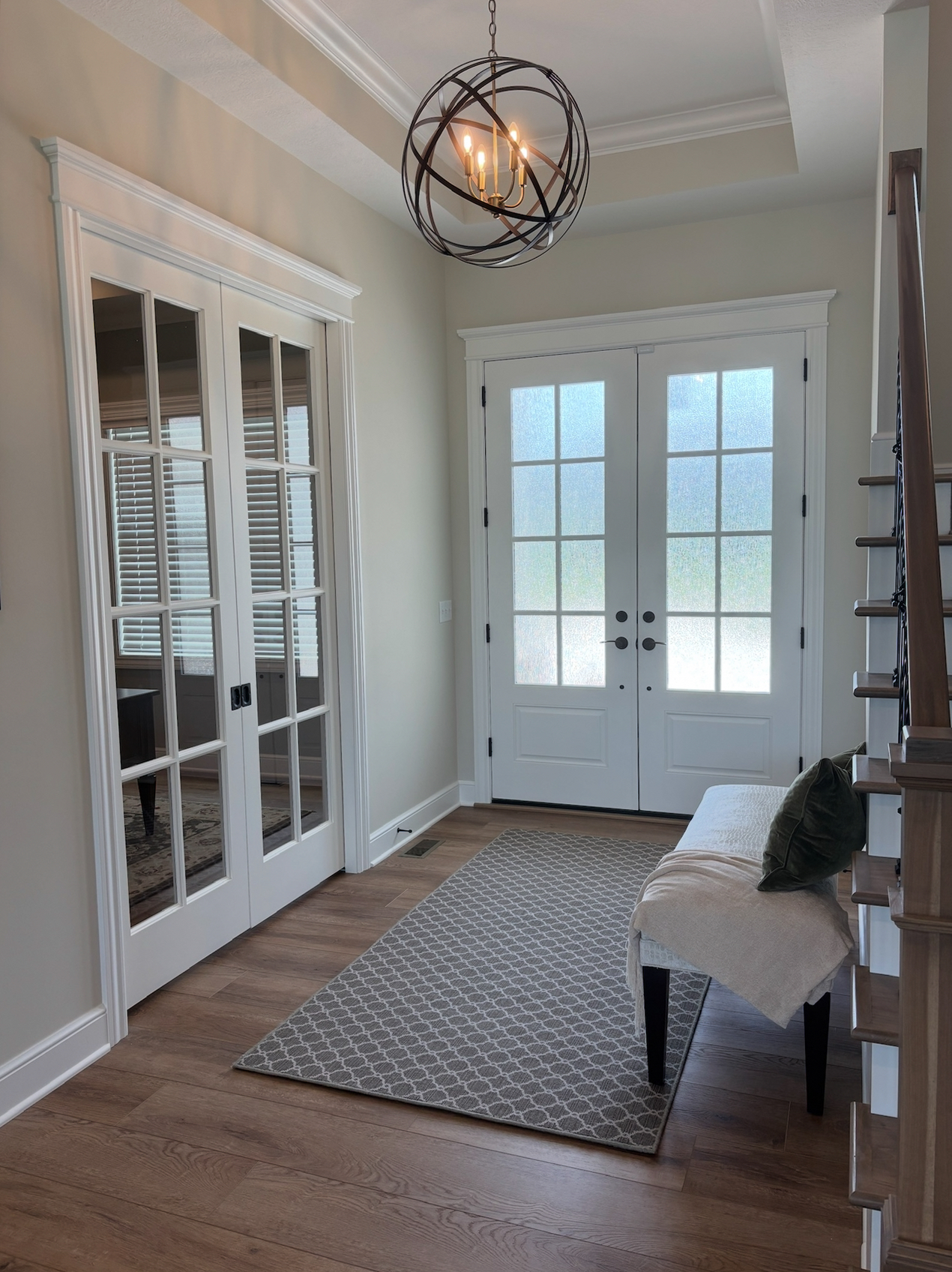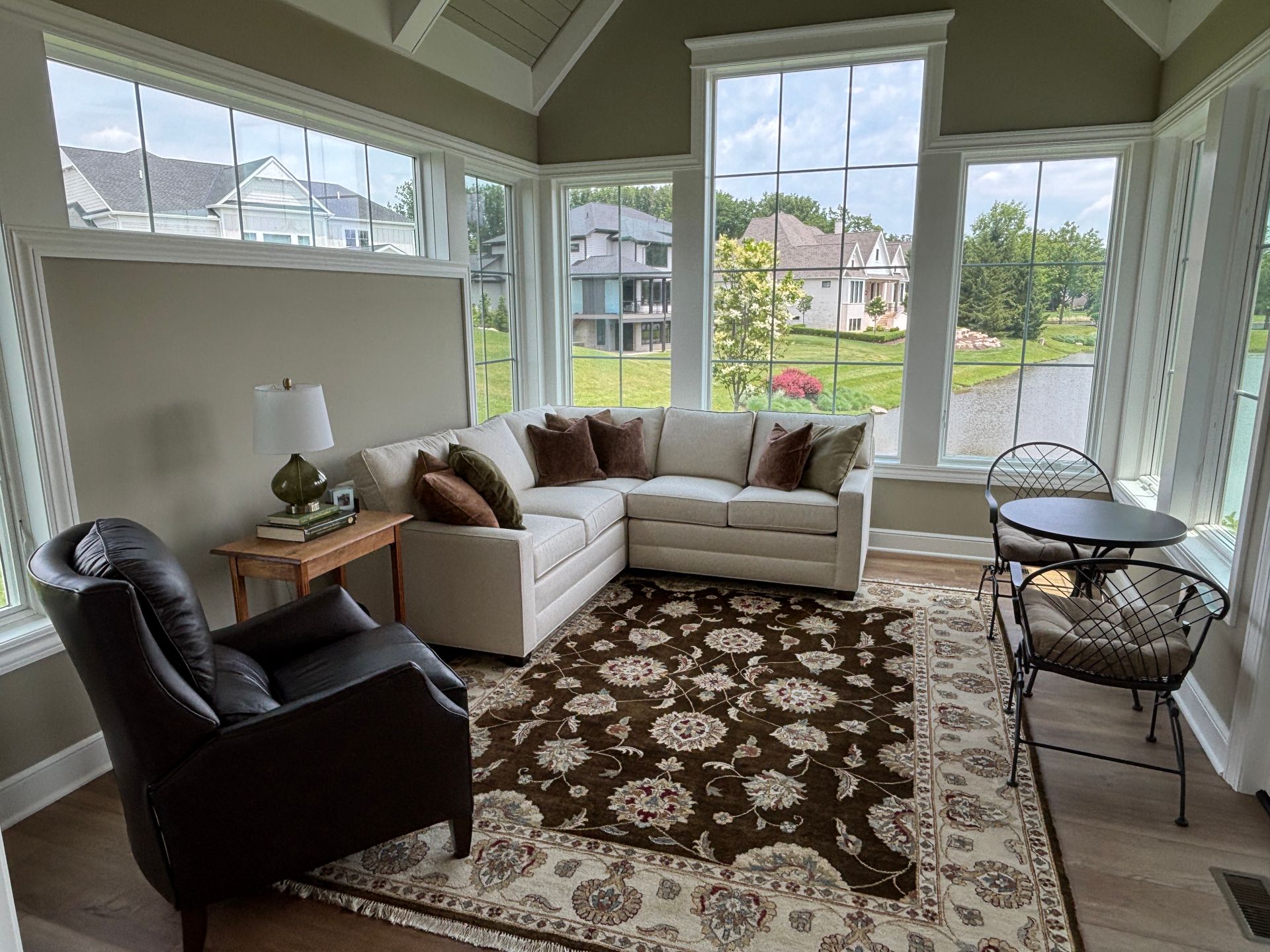 Features: Main floor living layout, sunroom, covered front porch, covered rear porch